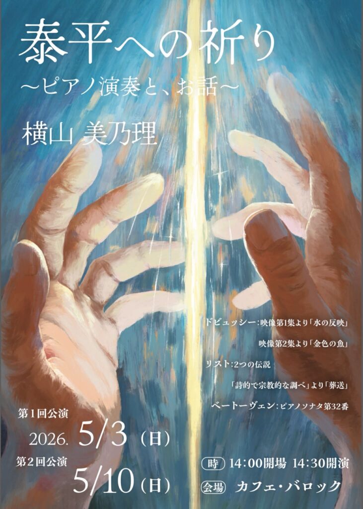 5月は横山美乃理さんがピアニストとして再出発したつき。思い入れの強いコンサートとなります。